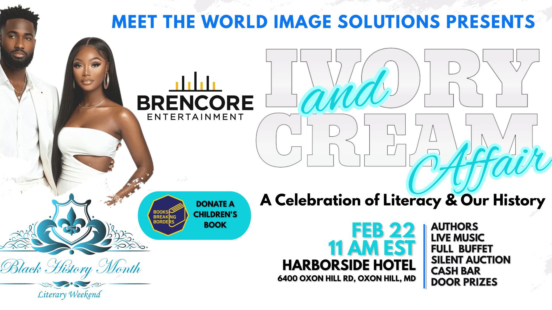 The signature event for the Black History Month Literary Weekend will be the Ivory and Cream Affair Literary Brunch, hosted by comedian Christopher Columbus with musical entertainment by the DMV’s own Brencore Entertainment. Guests are invited to wear their best ivory or cream outfits and come out to the Harborside Hotel in Oxon Hill, MD, where they will enjoy live music, a silent auction, and author interviews. The winners of Meet the World’s 8th and 9th Grade Essay Contest and the For the Culture Book Awards will be honored during the event. VIP and general admission options are available.